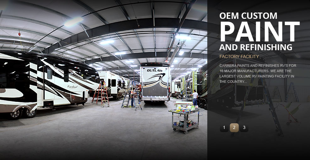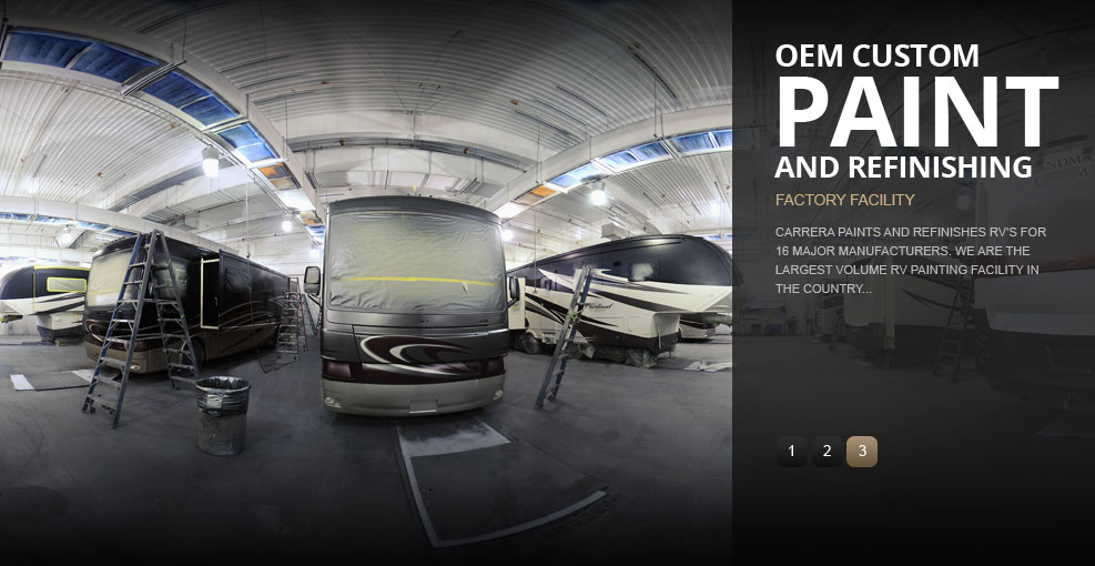 Carrera Custom RV Painting is a premier OEM Custom Paint Refinishing facilility located in Elkhart, Indiana. Having